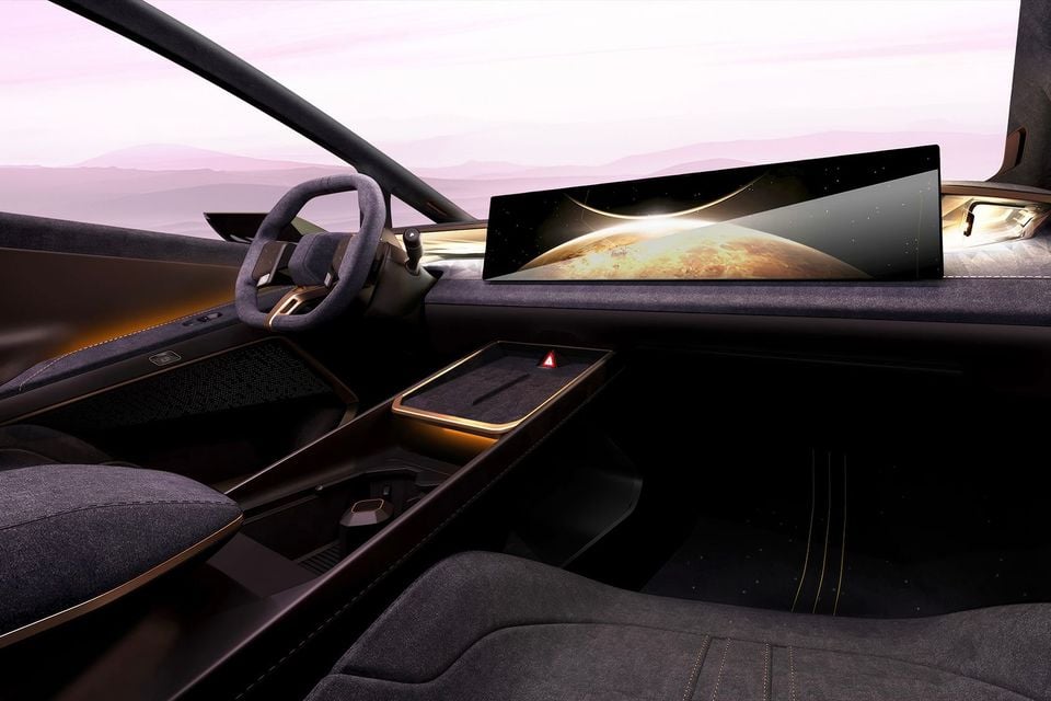 The Venus concept is finished in radiant gold, in reference to the planet it's named after, and features a "lightweight roof structure" and a transparent spoiler. Inside is a "driver-focused interior" with layered mood lighting, "premium materials", and a screen that nearly spans the width of the car.
