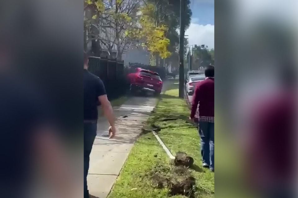 Another video was posted online of the driver showing the events after he collided twice into the black fence. In this video, the driver is seen trying to flee between two parked cars but the Stelvio couldn’t make it through.