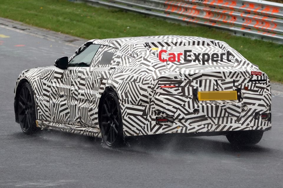 Spied on the Nurburgring in Germany, the new sedan is clad in disguise tape. There’s also some false body panels underneath hiding the car’s shoulder line, and the design around the C-pillar, the back of the roof, and the area where a rear windscreen area would normally live.