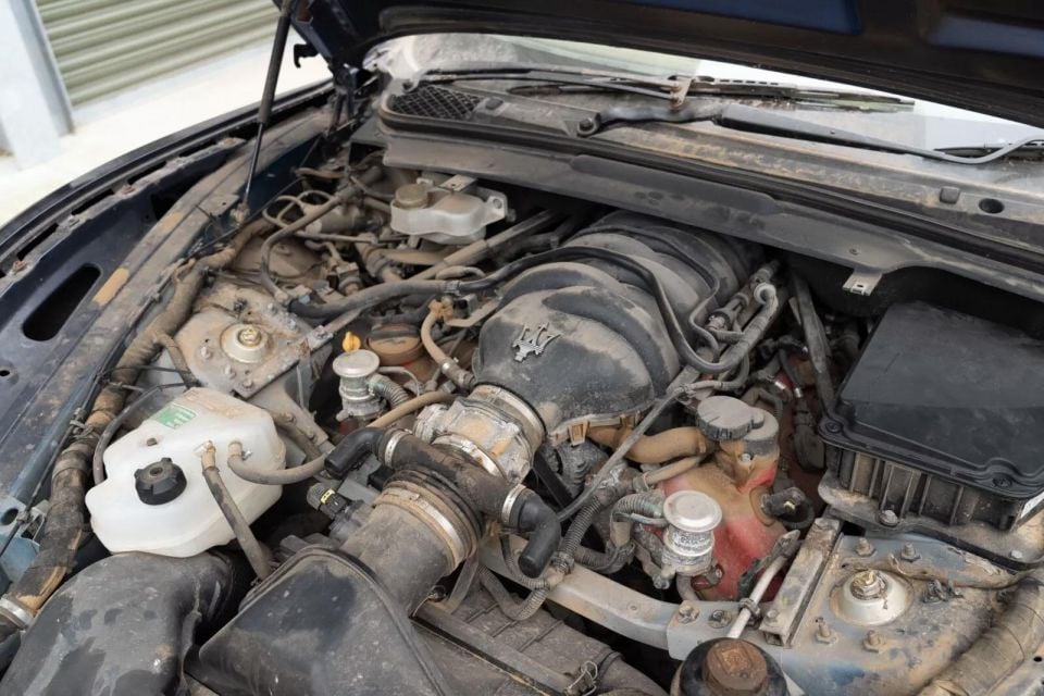 The engine bay is similarly caked in the same dust, though it’s still reported to be in good mechanical condition. The Maserati will likely need a full suite of new suspension components though, judging by the sounds heard on DriveTribe’s video.