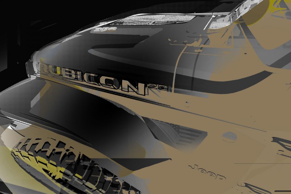 Said to be commemorating a vehicle that launched 20 years ago and was the “most capable production vehicle of its time”. This vehicle has to be the Wrangler Rubicon, which was revealed in 2003.