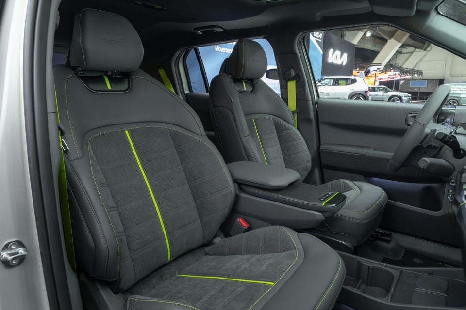Splashes of lime green on the steering wheel, seats, stitching, arm rests, ambient lighting, seat belts, and door trims liven up the interior, while the eye-catching hue is also used on the brake calipers.