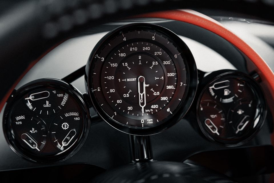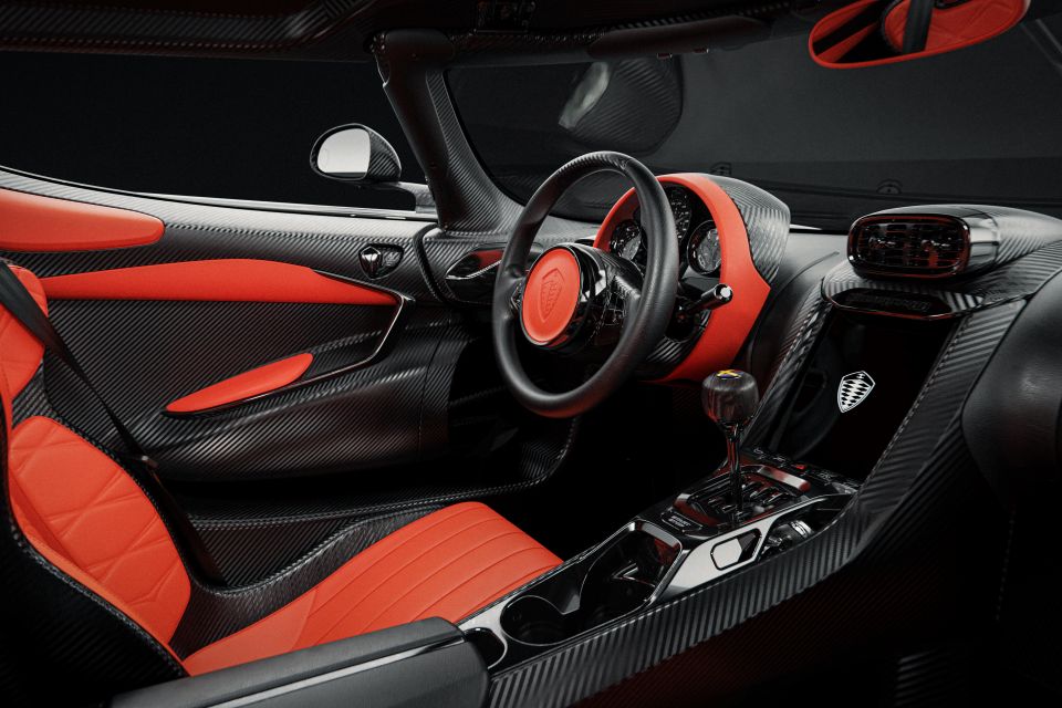 Koenigsegg says its symmetrical design makes it simple to convert from left- to right-hand drive, while the analogue gauges, round steering wheel, and manual shifter are designed to underscore the depth of engineering underpinning the car.