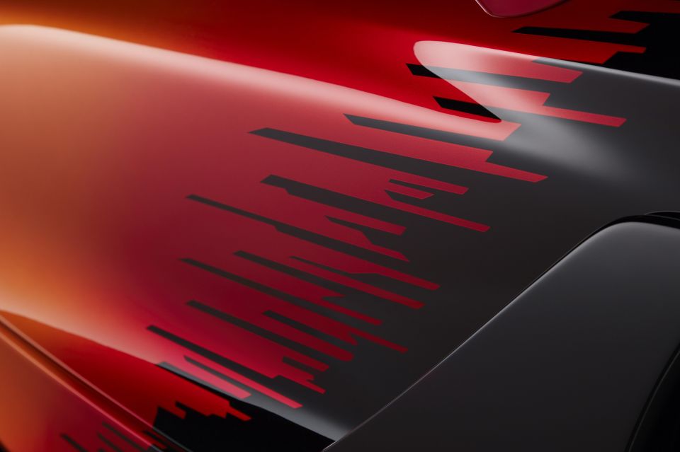 It’s available with a choice of two exterior themes. Strata, inspired by a city skyline, fuses Azores Orange paint with Memphis Red and Cherry Black. The paint job requires 390 hours of hand painting and finishing.