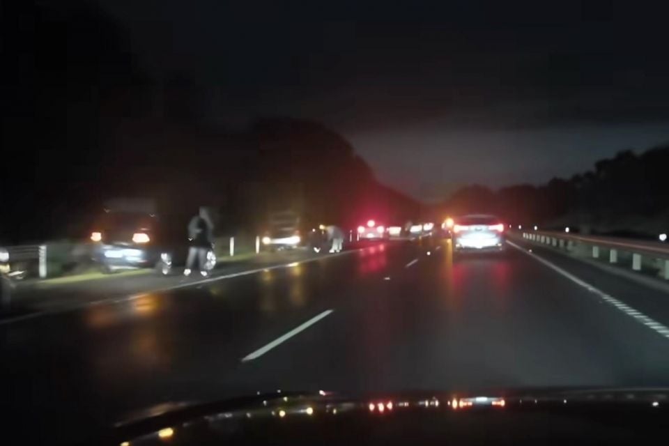 A video from the Dash Cam Owners Australia Facebook group shows a long line of cars backed up on the side of the freeway after falling victim to the large pothole.