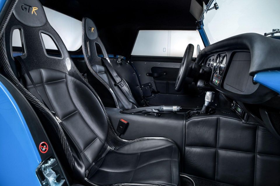 On the inside there are new door cards to accommodate the high shoulder line, bespoke instruments, GTR graphics, and a build sequence plaque. Carbon-fibre race seats with a built-in harness are available as an optional extra.