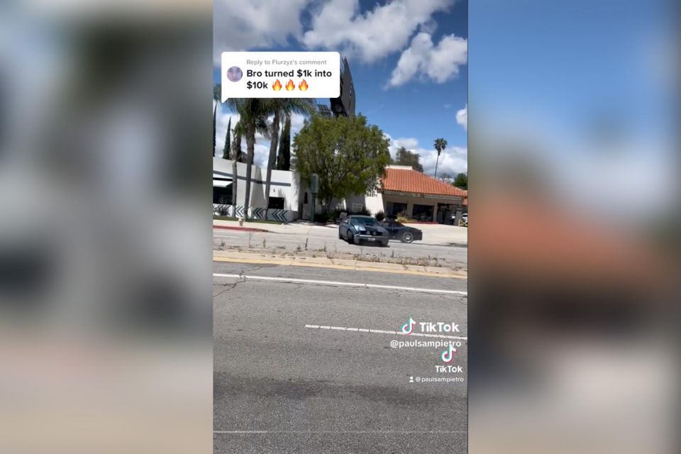 The Ford Mustang then crashed into an oncoming Porsche Boxster before taking off again.