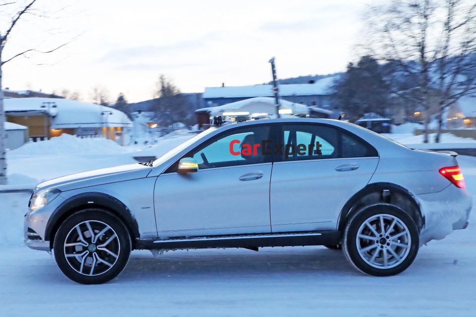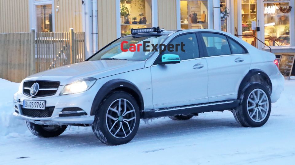 Compared with a regular C-Class, it’s obviously riding considerably higher. You’ll also note there’s a roll cage and a roof-mounted light bar.