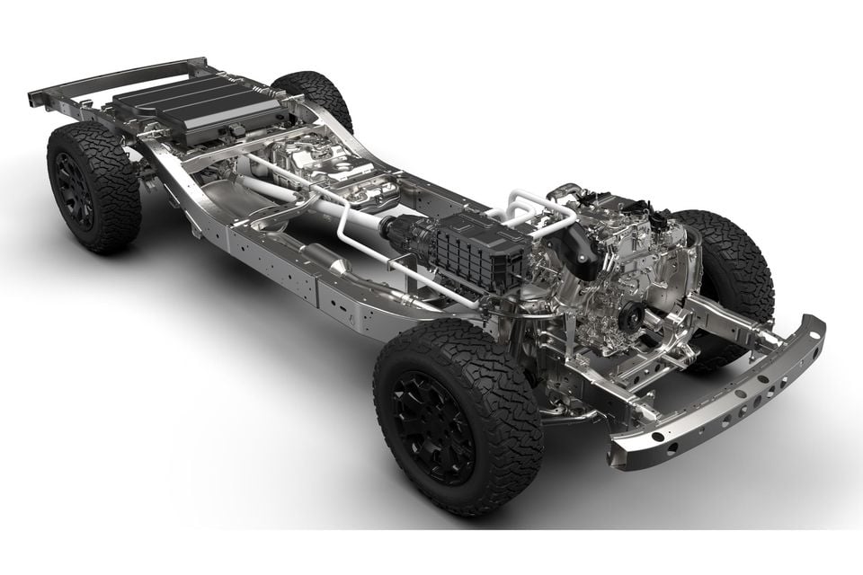 The Frontier Pro offers selectable hybrid, electric, performance and snow drive modes, five-link rear suspension, and comes standard with four-wheel drive and 18-inch alloy wheels wearing 265/65 R18 tyres.