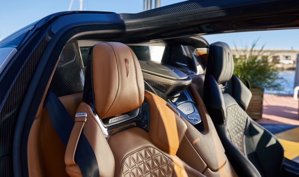 The seats themselves are by Italian racing gear specialist Sabelt and feature rear backrests, seat shoulder inserts, and inlays in exposed carbon-fibre specially tinted Iconica Blue – Pininfarina’s signature colour.