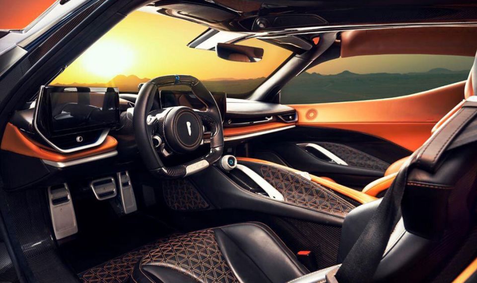 Pininfarina claims 97 per cent efficiency with instant throttle response via all-wheel drive. There are five drive modes (Calma, Pura, Energica, Furiosa, Carattere) each of which alters amount of power generated by the drivetrain.