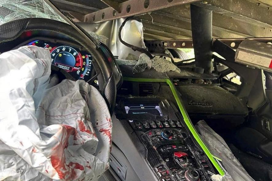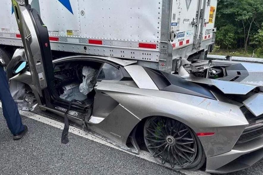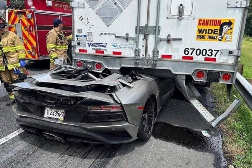 The driver of a rented Lamborghini Aventador S has smashed into the back of a truck while reportedly traveling 100mph (160km/h) in the U.S.