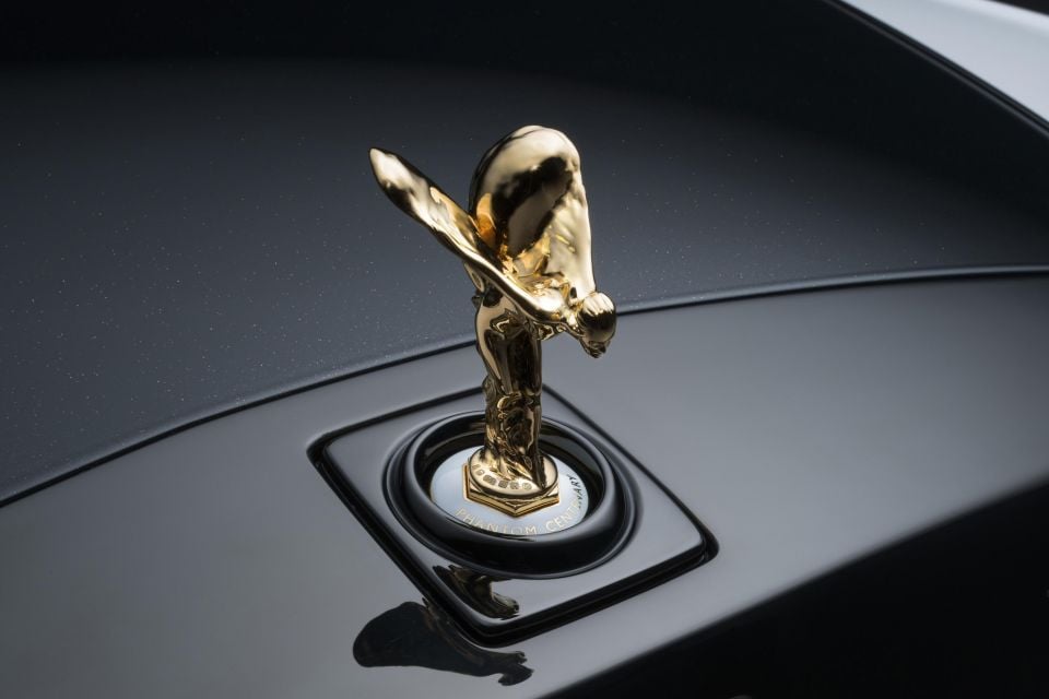 Atop the grille is a Spirit of Ecstasy figure patterned on the one fitted to the first Phantom, cast in 18-carat solid gold and plated with 24-carat gold. The limited edition rides on unique disc wheels, each etched with 25 lines.