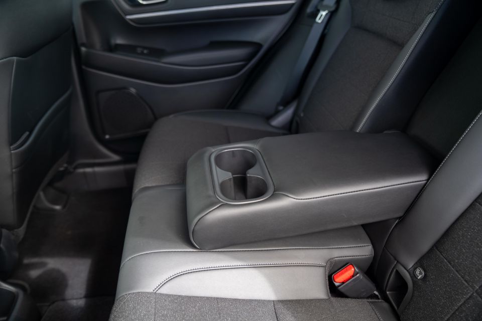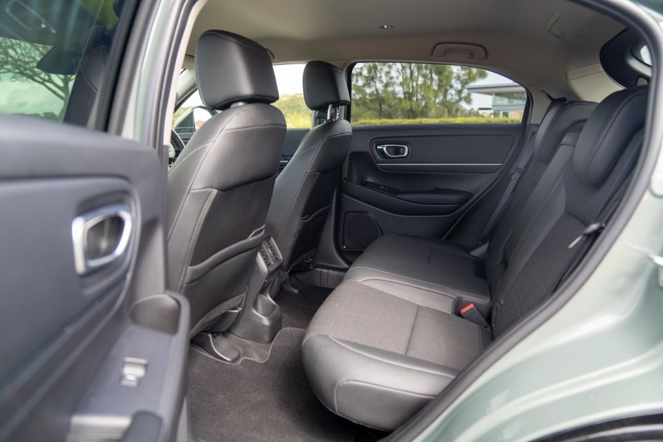 But, for its size, the HR-V offers more space in the rear than most small SUVs, with generous legroom, more supportive side bolsters than you’d typically find on a bench seat, a fold-down armrest with two additional cupholders, rear air vents, and USB-C power outlets (in the e:HEV L).