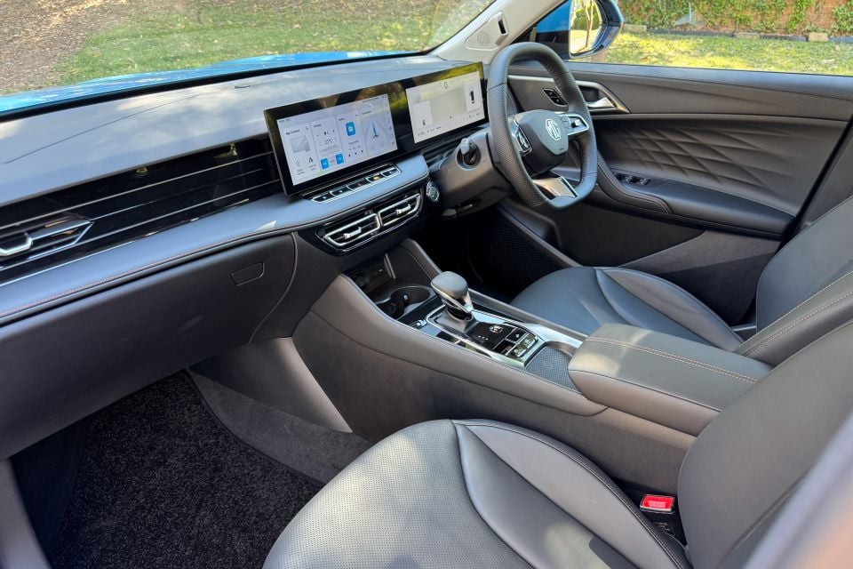 The twin-screen setup provides all the necessary information for the driver clearly in the instrument cluster and, while the infotainment system houses most of the controls for vehicle settings and ventilation, MG’s operating system has a logical menu structure that is easy to navigate around.
