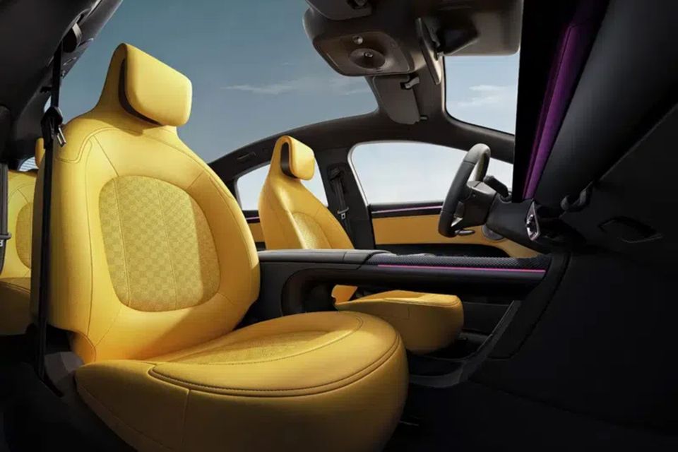 Nappa leather upholstery is offered in three colour themes – Grid Yellow, Shadow Black and Wild Brown – with matching door trims. The dashboard is finished in grey, while ambient lighting includes up to 800 lighting points with 256 selectable colours.