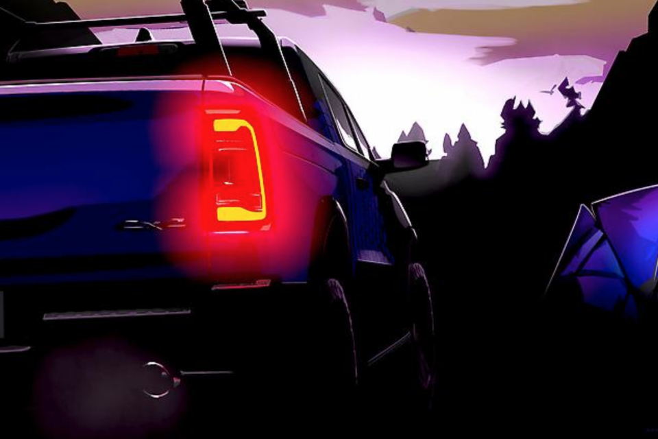 In front of the concept there’s a tent that’s lit up in a similar blue colour as the pickup truck.