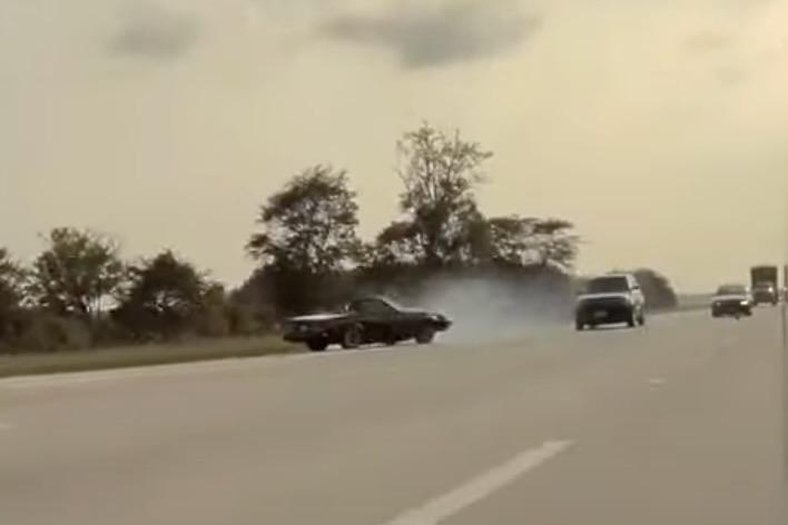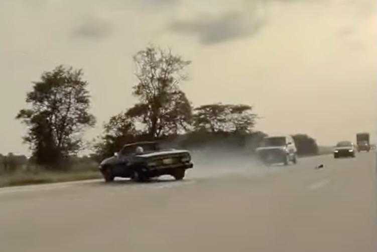 According to the video posted by ViralHog, the Triumph TR7 was driving up I-70 W near Columbus, Ohio when it ran into strife.