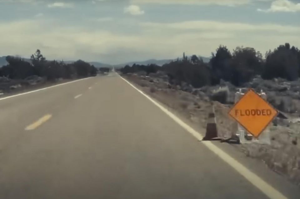 As the incident unfolded the driver drove past a bright orange ‘flooded’ sign, though they claimed similar signs are present in the area usually without any water present.