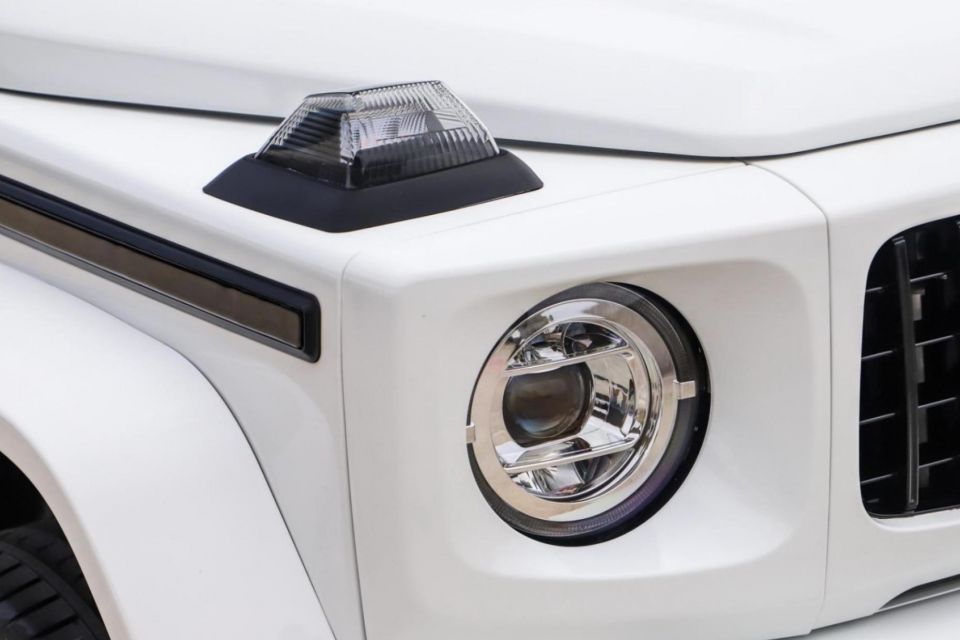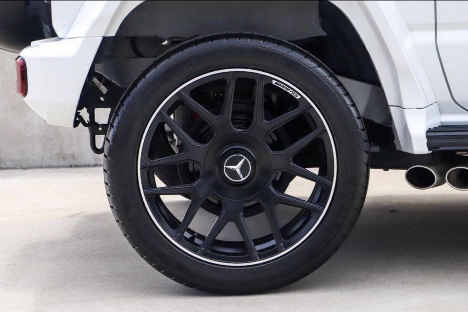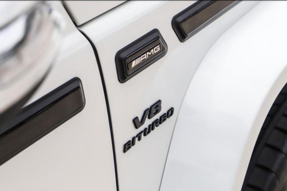 It wears a G-Class body kit with extensive Mercedes-Benz badging along the vehicle including, amusingly, G63 AMG and biturbo V8 badges.