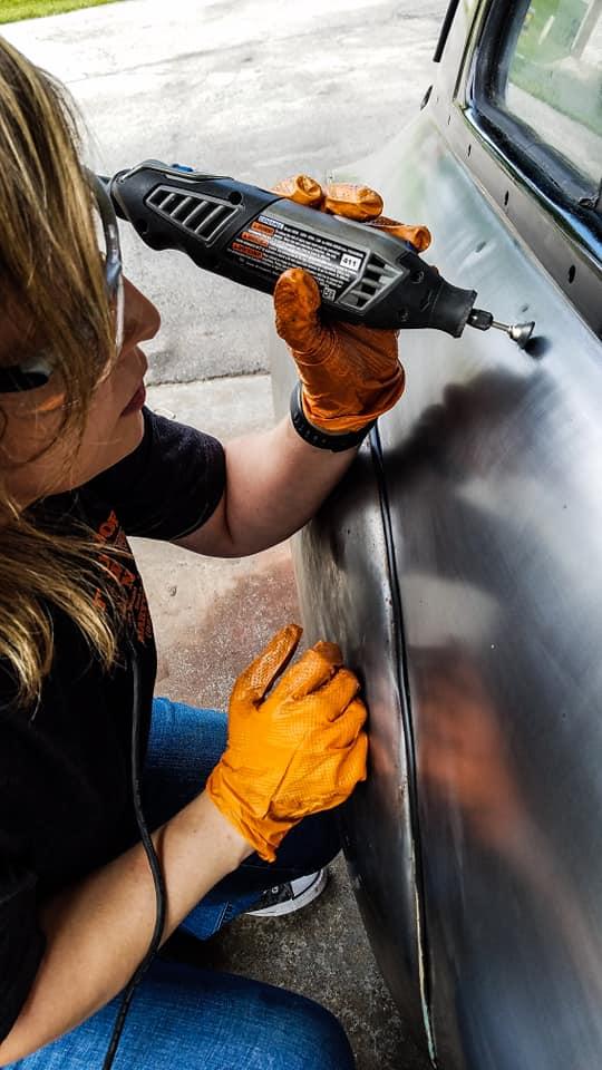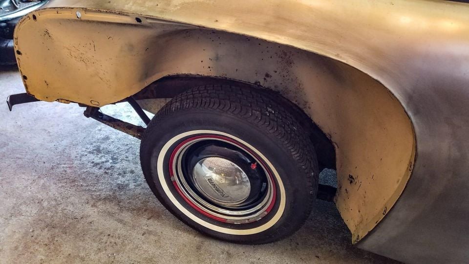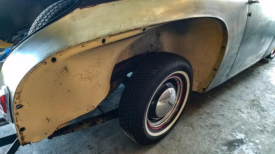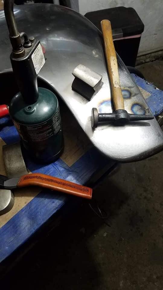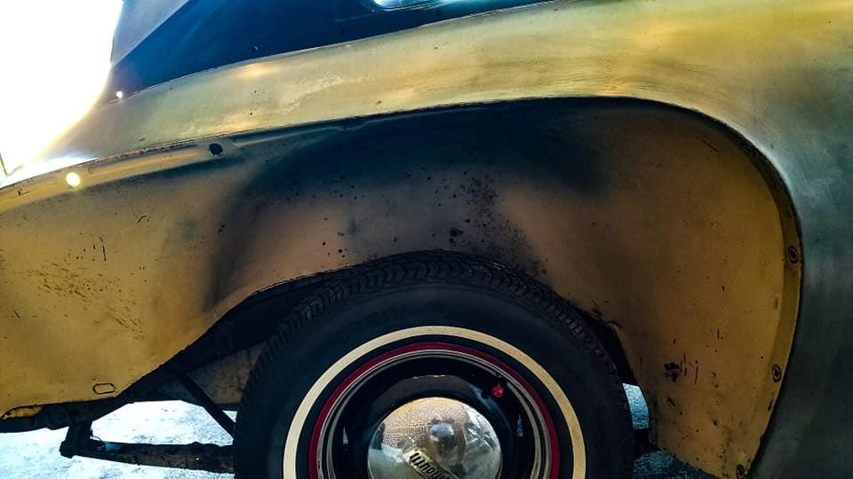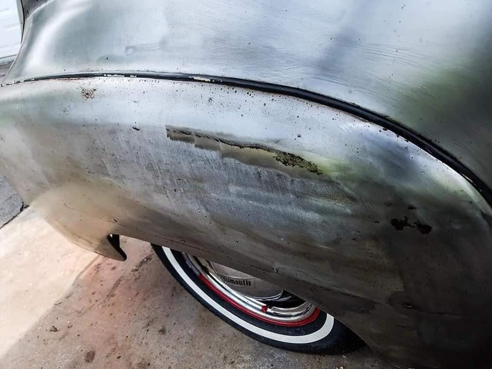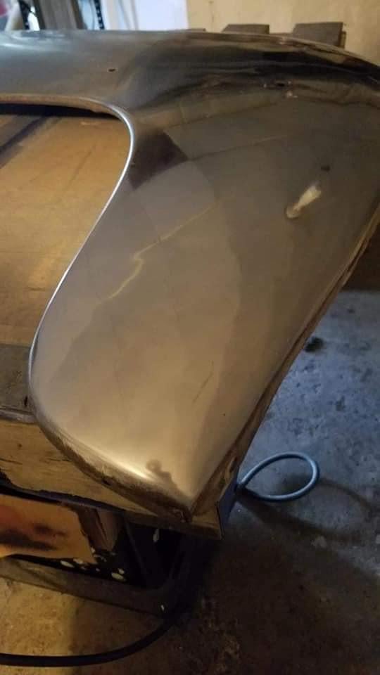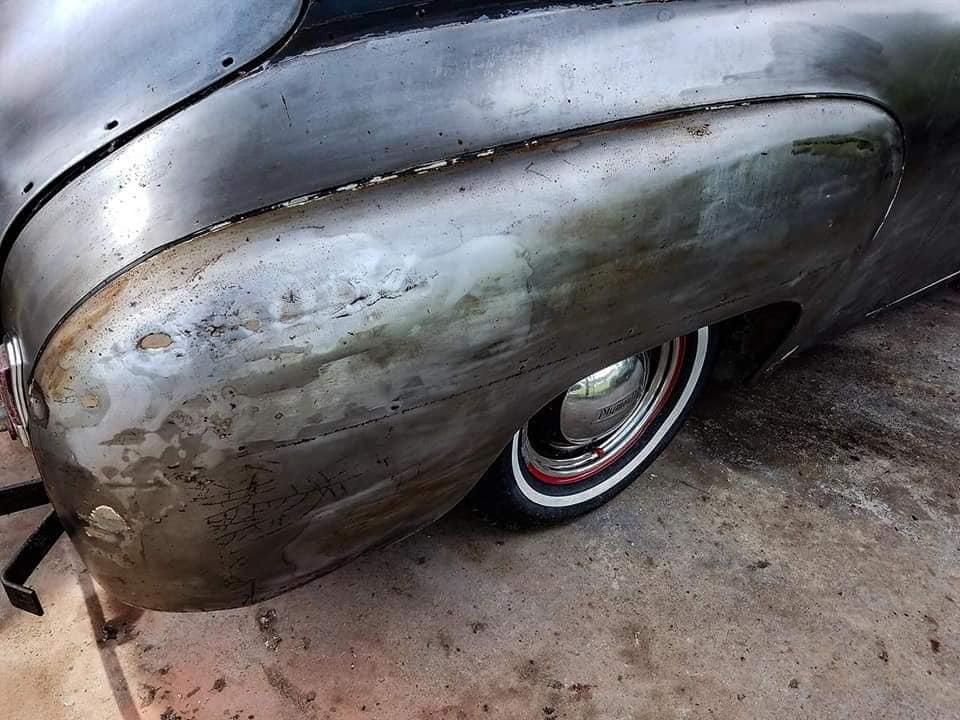 “With a set of old dollies, body hammer and a slap file, and little heat I worked the dents out. Used a DA sander to find high and low spots. From there I just started sanding and sanding and more sanding. So I figured if this fender can look this nice, let’s polish the whole thing. Did I mention patience?”