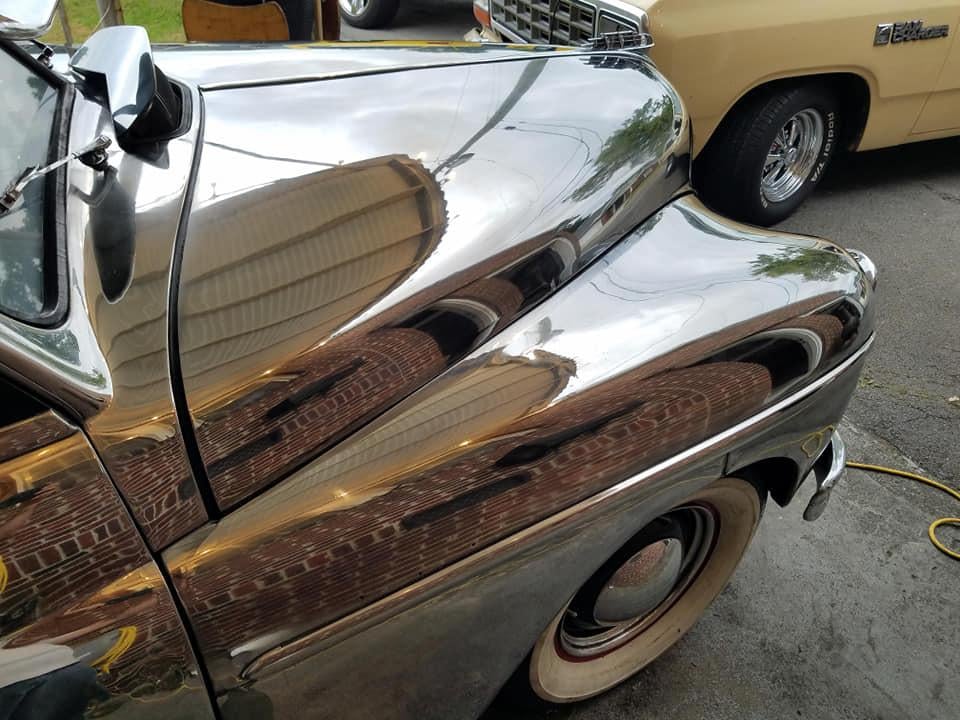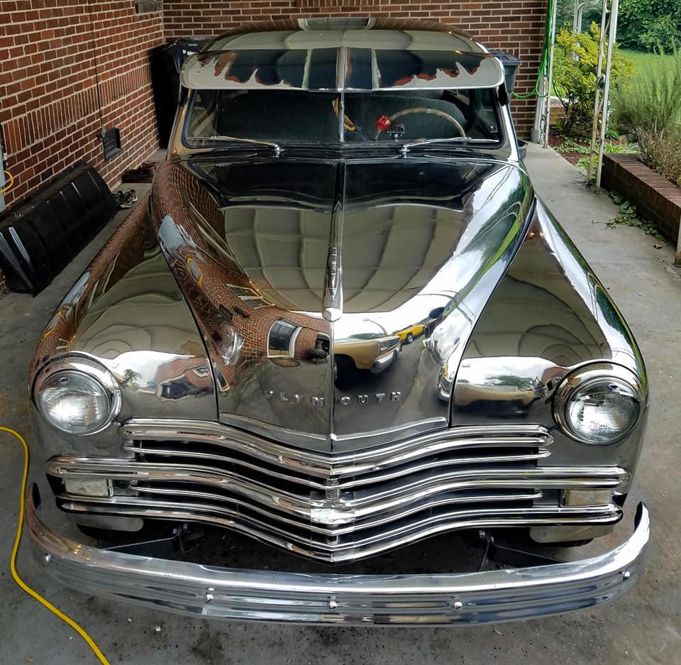 Nope, this is not a wrap, nor is it chrome paint. This, my friends, is straight up steel as it left the factory in the late ’40s! Somewhere in Knoxville, Tennessee this wonderful bare metal restoration sits in the driveway, gleaming.