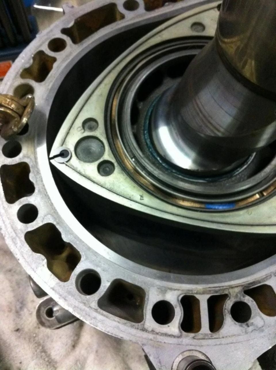 At its core, the engine consists of three banks, each housing four rotors. The top two banks connect via gears at the rear of the engine block to the centralized lower bank, which is linked to the output shaft. One bank is configured to counter-rotate against the main bank, while the other gearset features an idler gear, ensuring it rotates in the same direction as the main shaft.