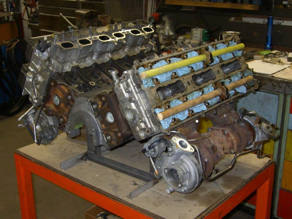 The project has obviously changed direction at some point, as we can see the idea of quad turbos was scrapped and then transformed to a more traditional (if you can call jamming two blocks together traditional) twin-turbo setup, one for each bank of six cylinders.