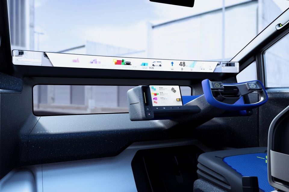 Up front, there’s just one seat, as well as a full-width display, plus a separate touchscreen to the side of the steering yoke.
