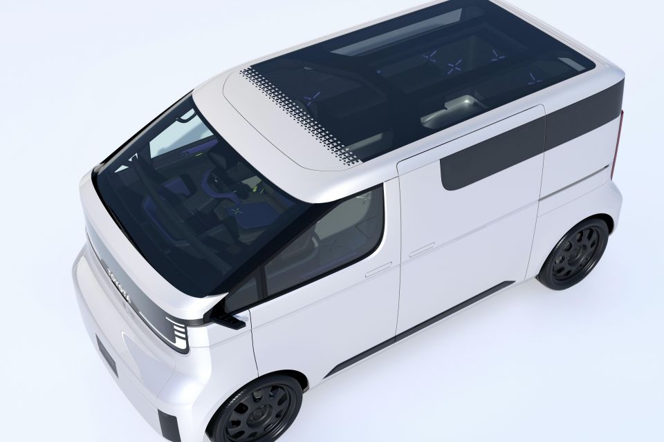 Like a shipping container, the Kayoibako is boxy. The wheels are also pushed out to the far corners of the vehicle.