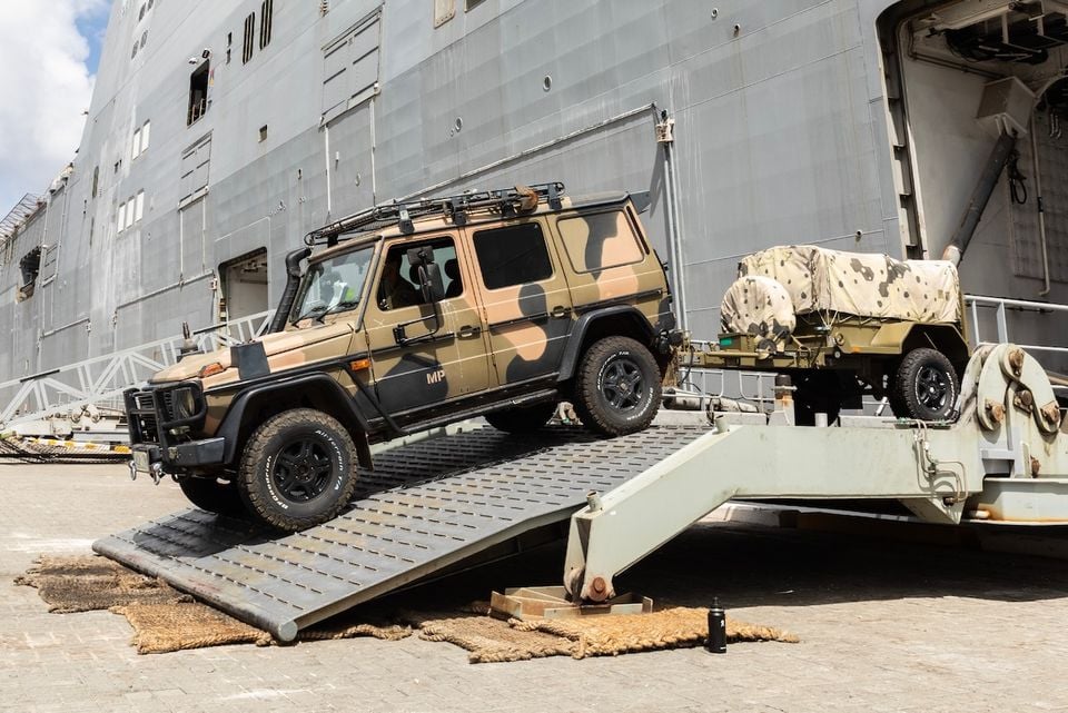 Closely related to the civilian G300 CDI Professional sold in Australia between 2015 and 2018, the ADF G-Wagon is powered by a 3.0-litre turbo-diesel V6 engine making an estimated 135kW and 400Nm, mated to a five-speed automatic transmission with low-range.