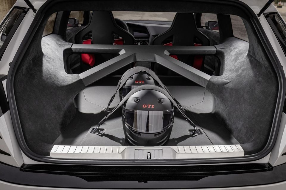 Compared to showroom-ready versions of the GTI, the concept’s body is 71mm wider and is 57mm lower. It rides on 20-inch alloy wheels with 235/35 tyres up front and 275/30 units at the rear.