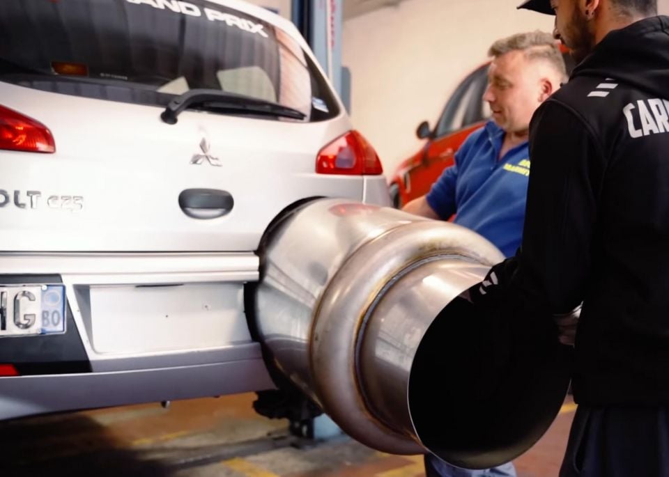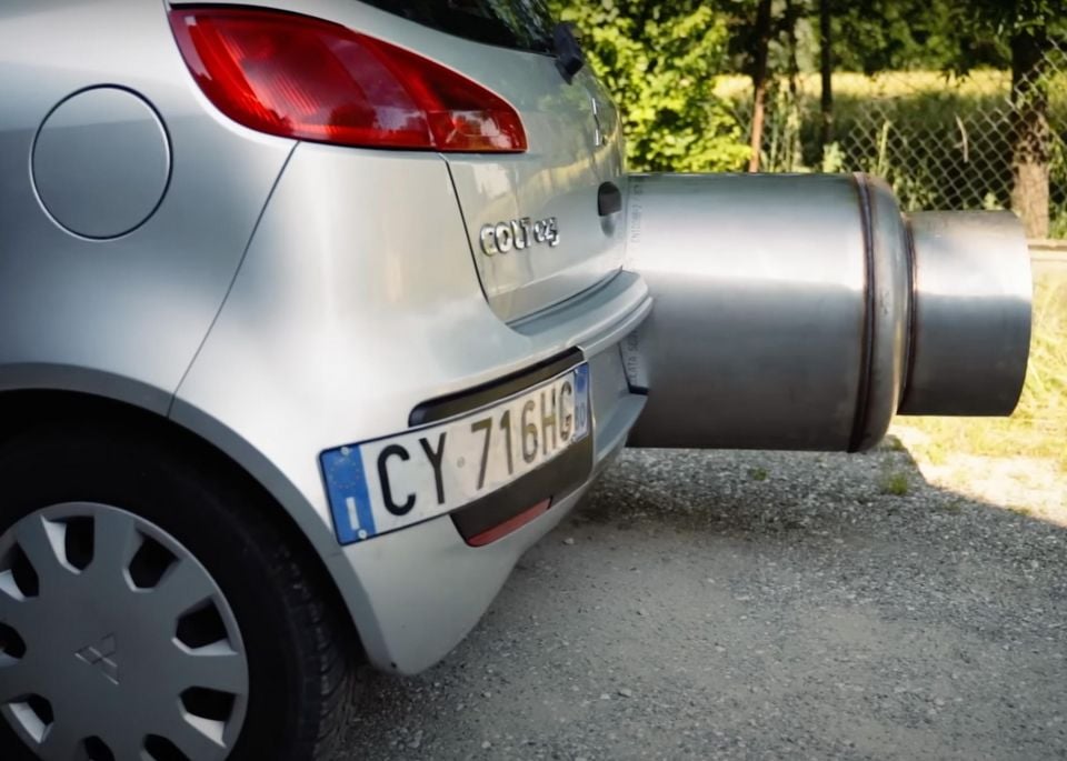 A Mitsubishi Colt from Italy has been modified with an extra-large exhaust capable of reaching 127 decibels.