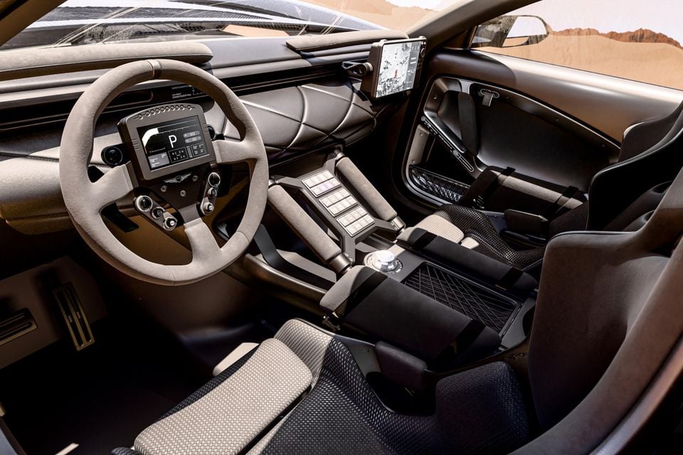 Driver instruments are also integrated into the steering wheel, providing feedback on the 820kW/1152Nm V8, about which the automaker has shared little additional detail.