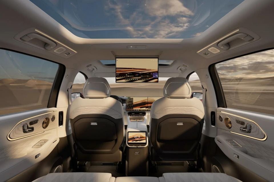 Luxury features include a 29-speaker Naim Palace sound system, a 17-inch 3K OLED ceiling-mounted rear screen, a 9.5L refrigerated compartment that can also be heated to up to 50°C, and heated, ventilated and massaging seats upholstered in Nappa leather.