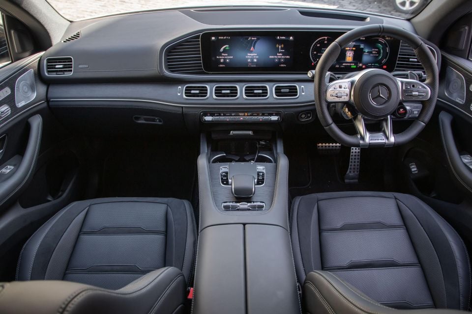The result? Zero to 100km/h in 5.3 seconds, four-tenths up on GLE. For 2.5 tonnes it’s no slouch, if not quite certifiably AMG-quick.