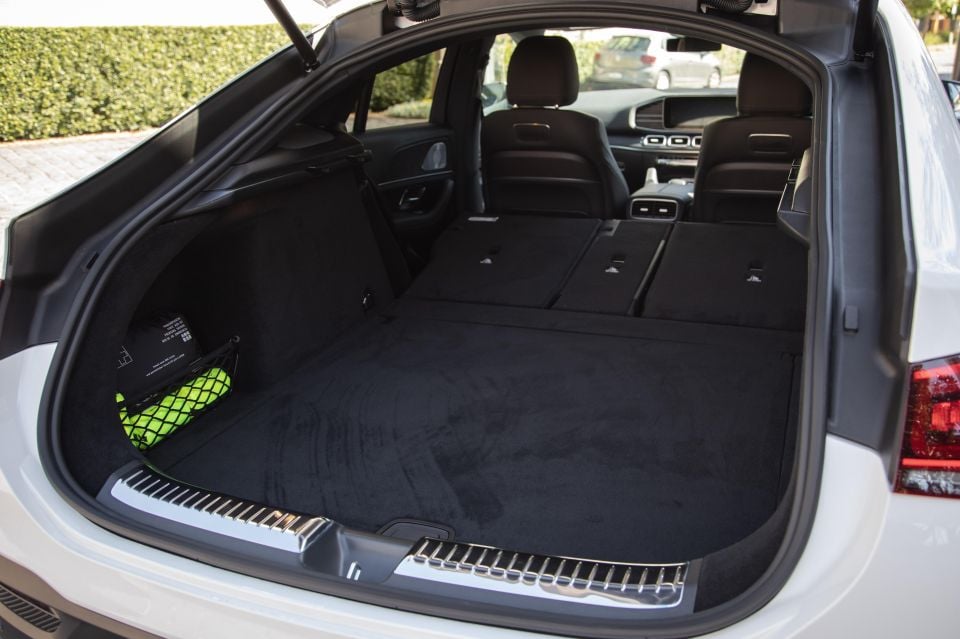 By comparison, Audi claims 605L and 1755L respectively for its Q8. There’s also a lot of space under the flat floor in a wheel-shaped depression that looks suspiciously well-suited to a space saver wheel despite the GLE53 only offering an inflator kit.