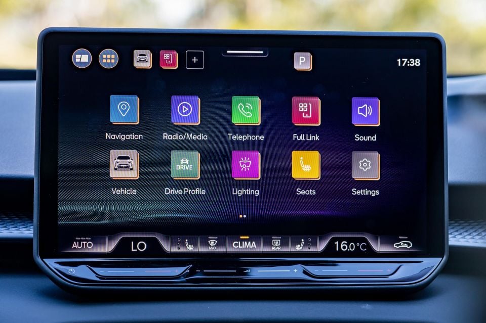 The bottom part of the screen hosts a fixed panel with climate settings, but you have to hit the ‘Clima’ button to adjust the fan speed, which might be a pain if you prefer a real toggle. There are temperature sliders and a volume slider below the screen, so at least that’s easy… ish.