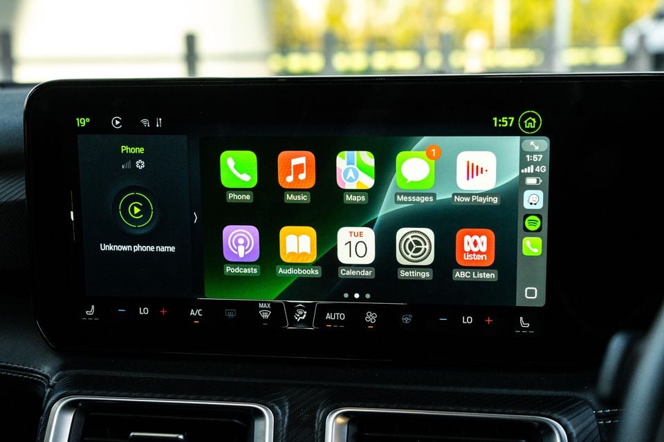 The 13.2-inch central multimedia is bright, vibrant and easy to use, with all the functionality we’ve come to love in modern vehicles. That means native navigation, wireless smartphone mirroring, connected services and, in the case of the Mustang, performance driving apps.