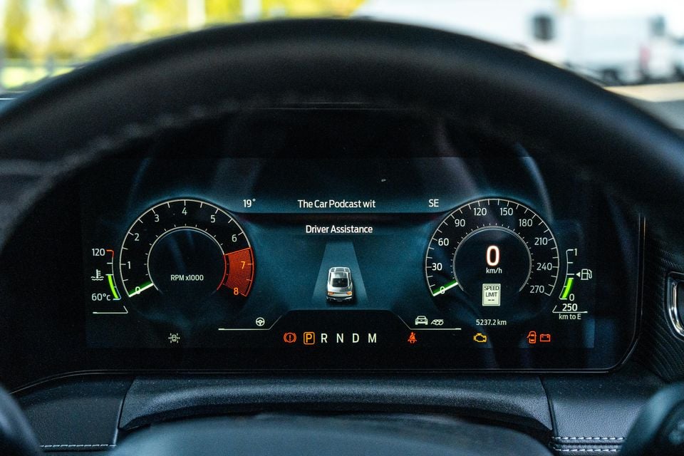 Shifting across, there’s likewise an impressive degree of configurability built into the 12.4-inch instrument display. The timeless class of physical gauges might’ve been lost, but Mustang owners can now choose from digital versions of the instruments of yesteryear, namely the first-gen dials of the 1960s, retro green-tinted ones from the late 1980s Foxbody model, and the white-face ‘New Edge’ dials from the early 2000s SVT Cobra.