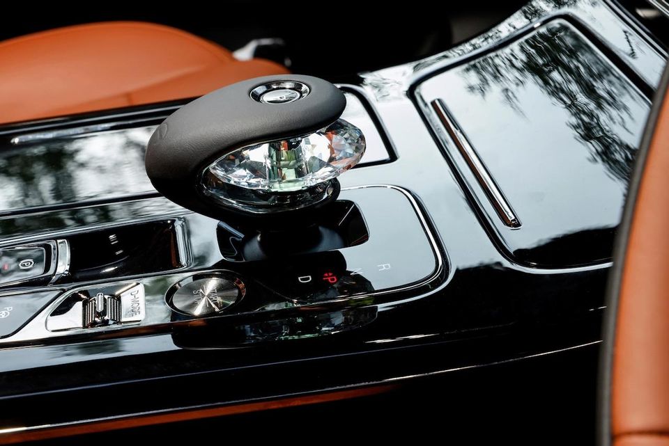 The shifter knob is more traditional in the way it works, but is anything but traditional in its design, featuring a giant round glass crystal that appears to have no actual function, other than being a fidget spinner for the driver.