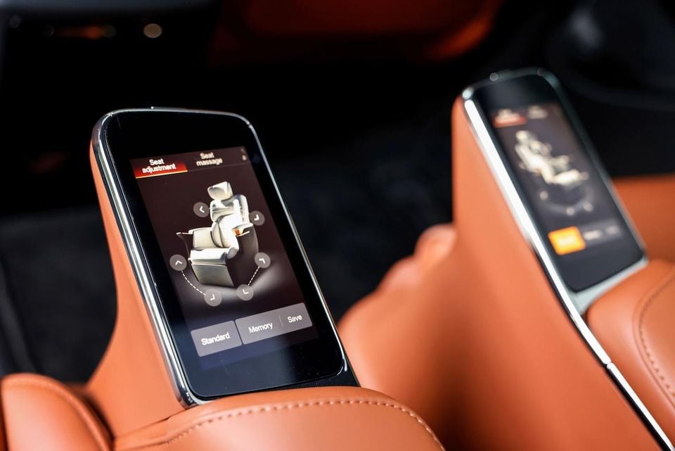 The two captain’s chairs are clearly the stars of the show, each featuring its own small touchscreen built into the armrest, controlling typical tilt-and-slide functions, as well as extras like heating, ventilation, and your choice of massage – which I naturally took full advantage of. For science, you understand.