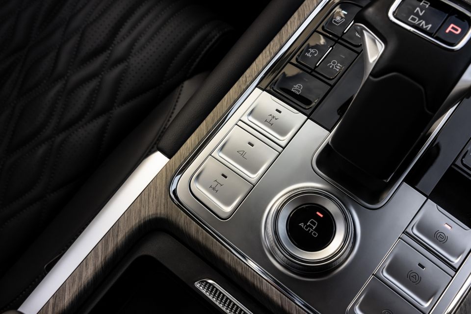 The centre console switches include a bank of buttons, half finished in silver, the rest gloss black, with a chunky shifter in between a mix of both.