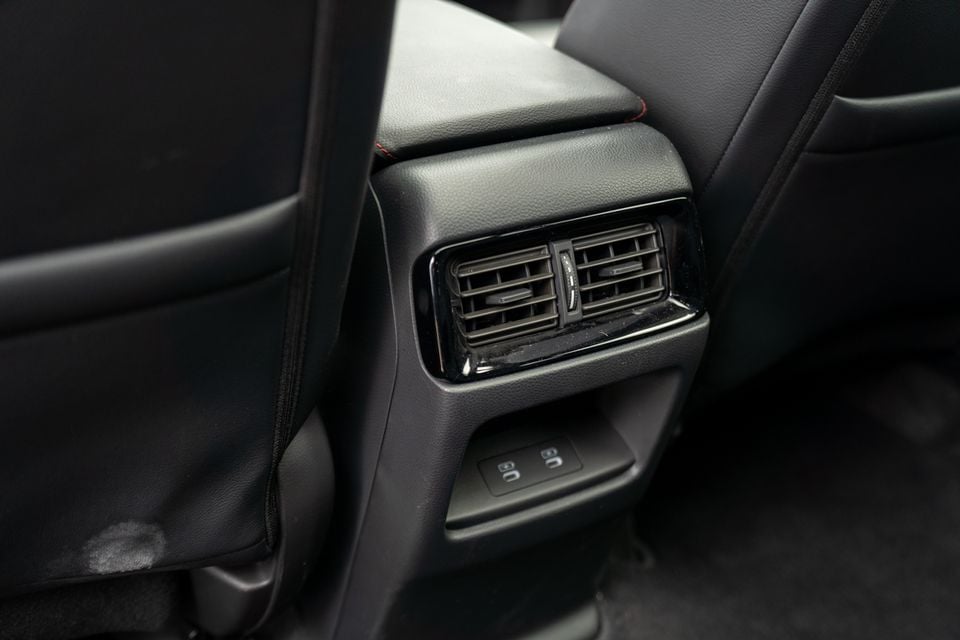 For those in the back, there is generous legroom for occupants in the outboard seats, along with adjustable air vents, two USB-C power outlets and a flip-down arm rest with cupholders. It's super-spacious for two but the raised transmission tunnel in the centre restricts the middle seat to little ones.