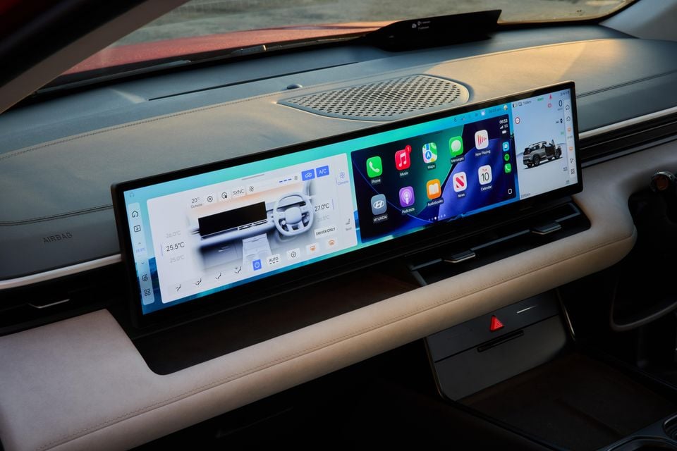 That’s part of the reason why the Elexio doesn’t really look like anything currently available in the current Hyundai range, from the distinctive exterior design to the 27-inch panoramic interior display that spans almost the entire width of the dashboard, running a new Android-based software interface.