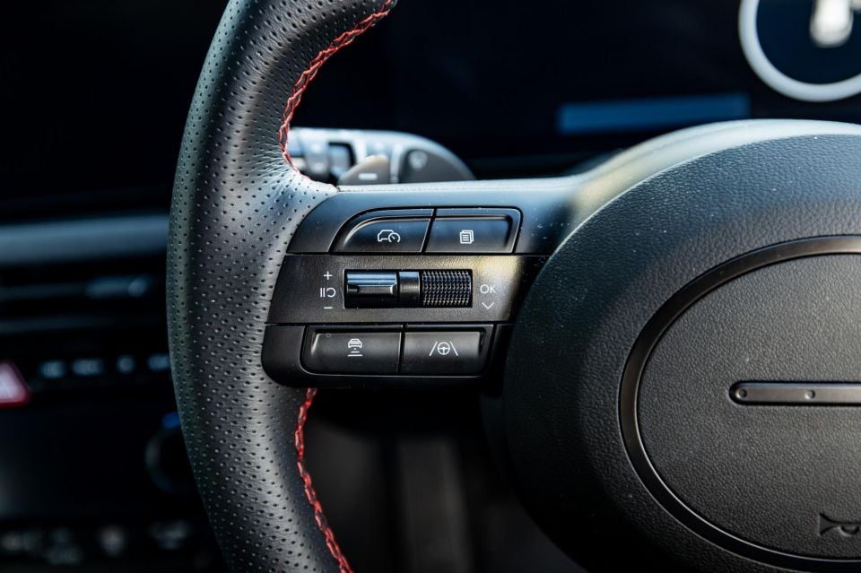 The fact that you can mute the speed sign tech is great (because it constantly gets it wrong – for instance, reading 110km/h signs as 70km/h on major motorways in Sydney). Just press and hold the button, and it’ll turn off the warning chimes. Press and hold the lane-keeping button to disable that tech, too. And there’s no driver monitoring camera, so no need to fuss with that, which is a welcome difference compared to other newer-gen Hyundais.