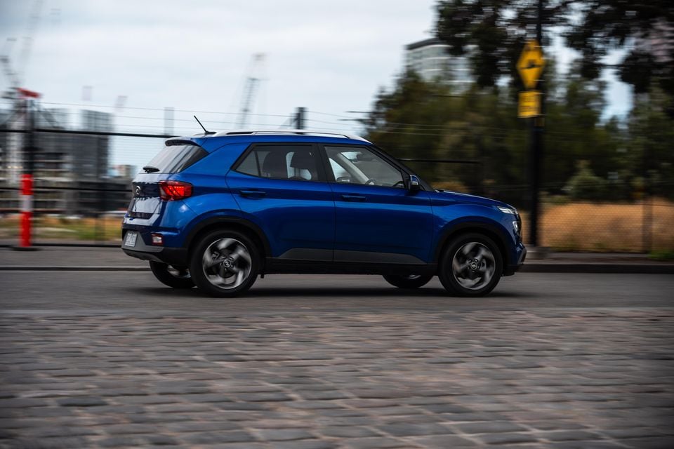 The only downside to lower-speed driving is that imperfections like speed bumps and tram tracks aren’t comfortably absorbed. We suspect the more generous sidewalls of the tyres on the smaller alloys fitted to cheaper Venues would mitigate this.