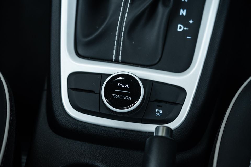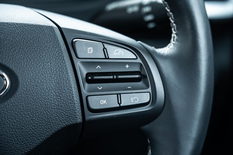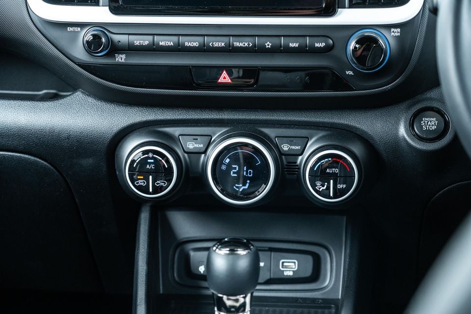 We find the steering wheel to be the most luxe item in here. It’s leather-wrapped and sized appropriately for the Venue’s stature, while its controls are all finished in durable plastic and operate robustly.