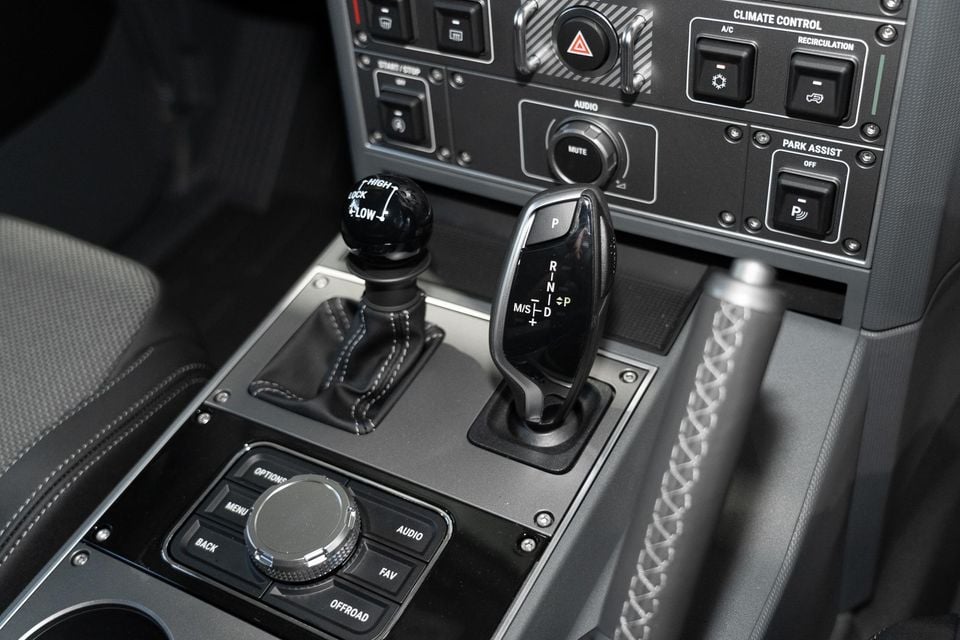 You can lock and unlock the centre diff while on the move – no need to shift into neutral. However, moving between high and low range does require a shift of gear. It also requires some muscle, as the diff locks in the Grenadier are entirely mechanical in nature. The whole process can be a bit finicky as a result.
