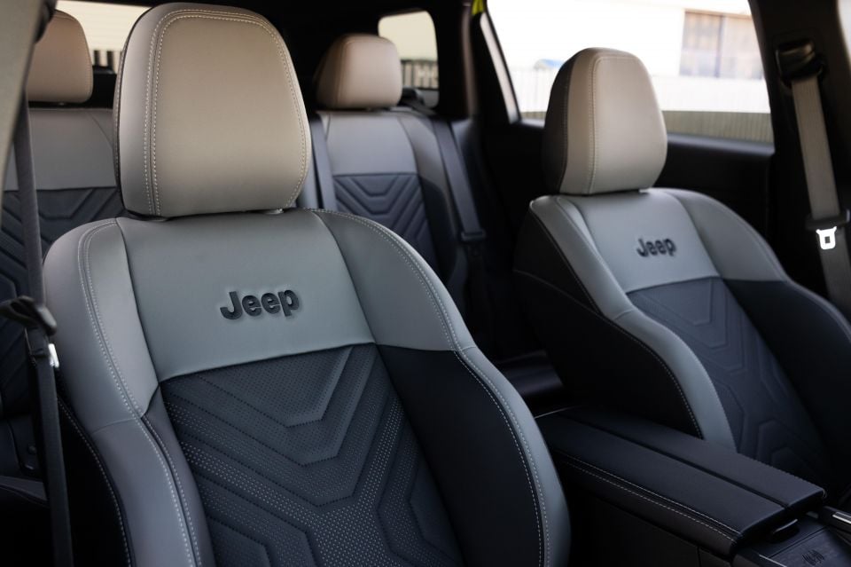 The Compass is fitted with cloth seats and grey stitching as standard, while First Edition models get seats with a cloth-and-vinyl covering with heating, while optional upgrades feature ventilated and massaging functions.